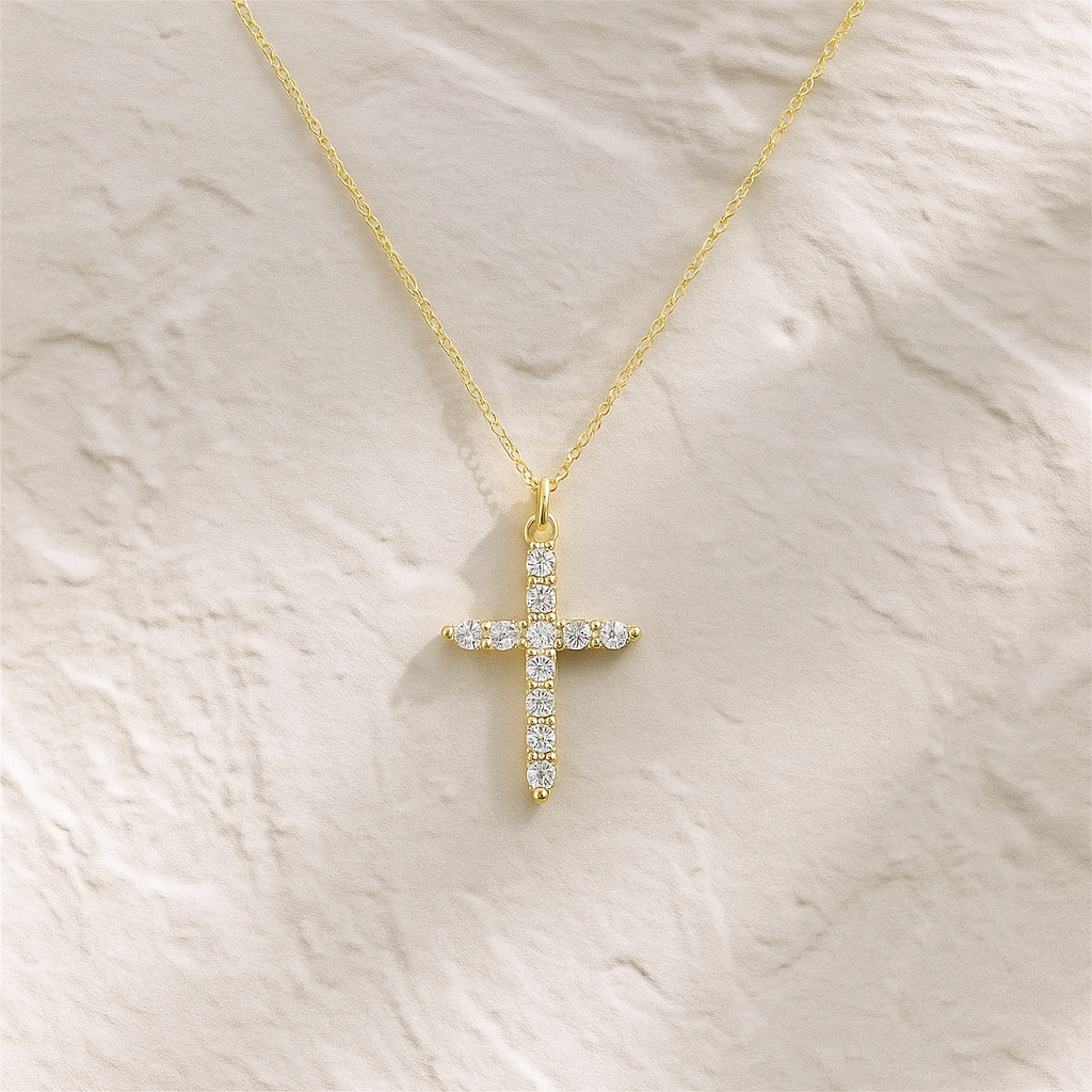 - Pendant Size: The cross pendant measures 1.5 x 2 cm, adorned with sparkling cubic zirconia inserts.