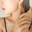 Elevate your accessory collection with the sophisticated elegance of these 18K Gold Plated Stainless Steel Stud Earrings. These exquisite earrings add a touch of refined charm to any outfit.